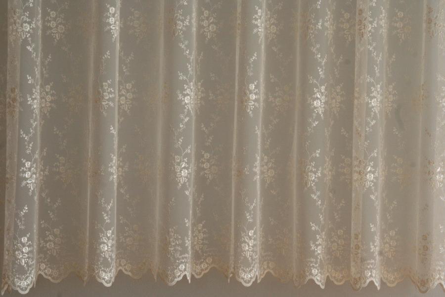 Tylová záclona s výšivkou. Tyl sa vyznačuje tým že nie je vôbec krčivý. Výšku záclony Vám bezplatne skrátime iba ak si zvolíte ušitie s riasenkou a napíšete rozmer v poznámke.