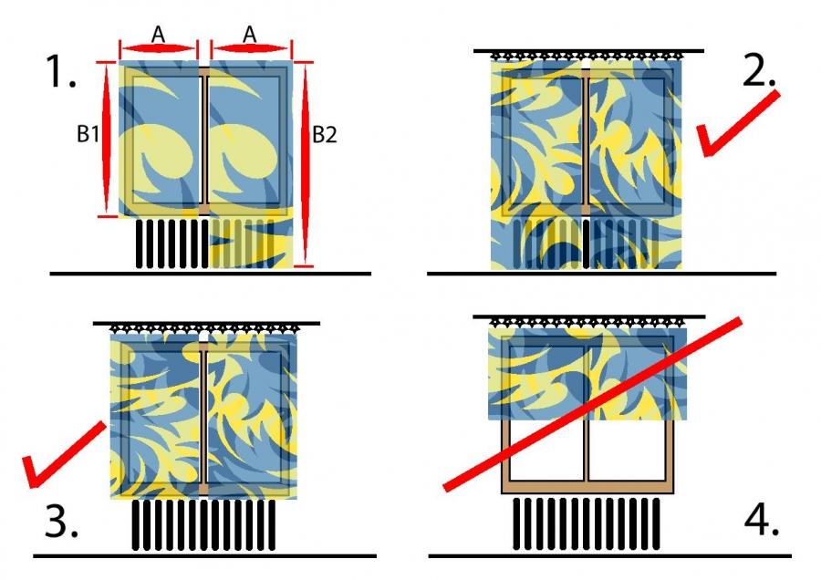 Black out je špeciálna trojvrstvá látka ktorá má rub aj líco farebné ( jednofarebné alebo vzorové ) a medzi nimi je čierna priadza zamedzujúca prenikaniu akéhokoľvek svetla neovplyvňujúca farbu závesu. Je to záves vysokej gramáže a napriek tomu je mäkký nekričivý hladký material. Šírka závesu je výrobcom daný rozmer ktorý sa môže líšiť + / - 2cm. Z bokov závesov sa zašije 4 – 5cm každý kus. Na výšku treba prirátať 10cm na zašitie. Napríklad pri závese výslednej výšky 240cm sa objednáva výška 250cm. Individualnu požiadavku si môžete zapísať do komentára pri vytváraní objednávky.