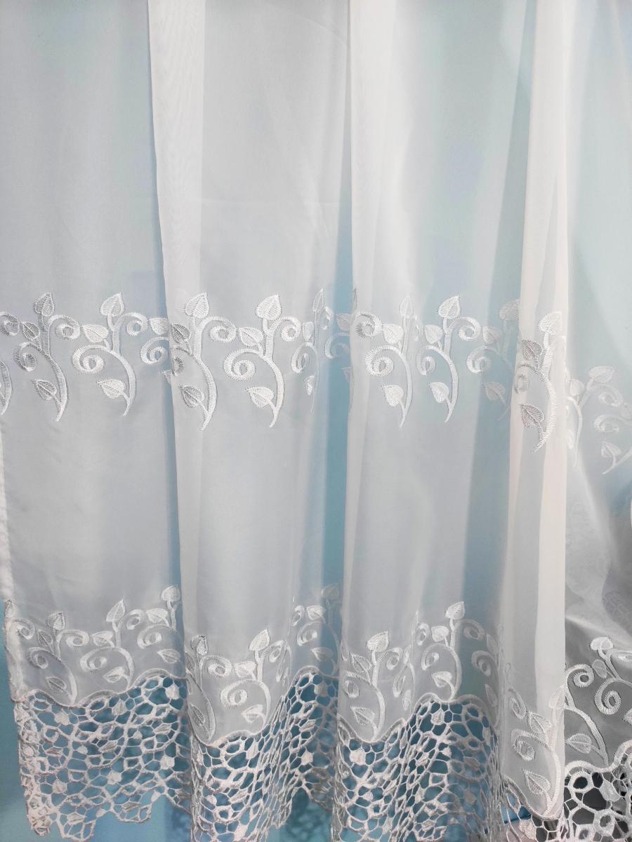 Hotová biela vyšívaná záclona rozmerov: 160cm × 400cm