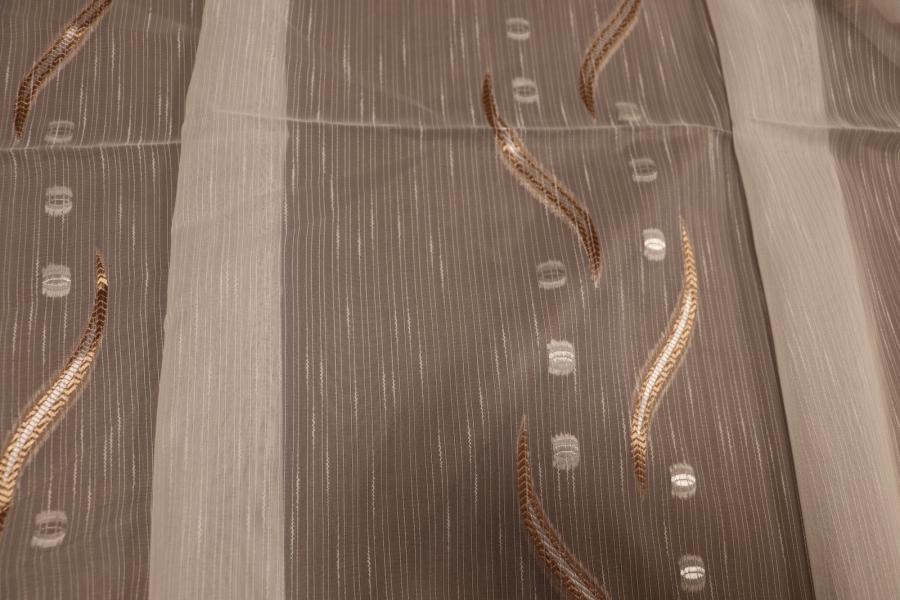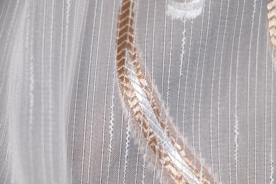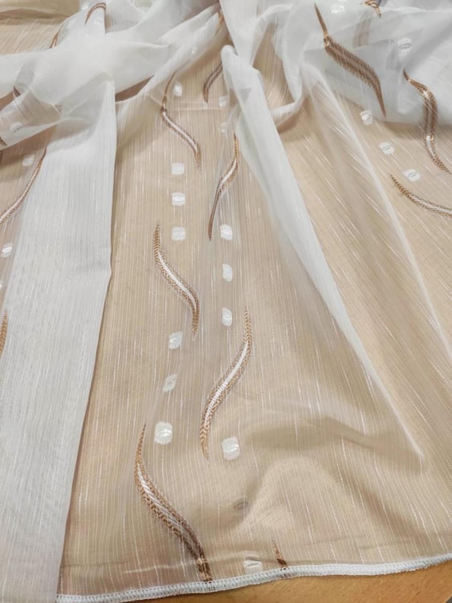 Svetlo prepúšťajúce syntetické vlákno so záťažovým olovkom. Výšku záclony Vám bezplatne skrátime iba ak si zvolíte ušitie s riasenkou a napíšete rozmer v poznámke.