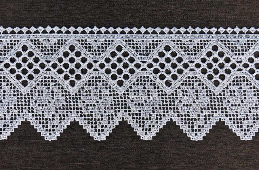• Syntetická krajka vzhľadu pravej čipky vhodná na dekorovanie spodnej časti záclon alebo záclonovej súpravy.