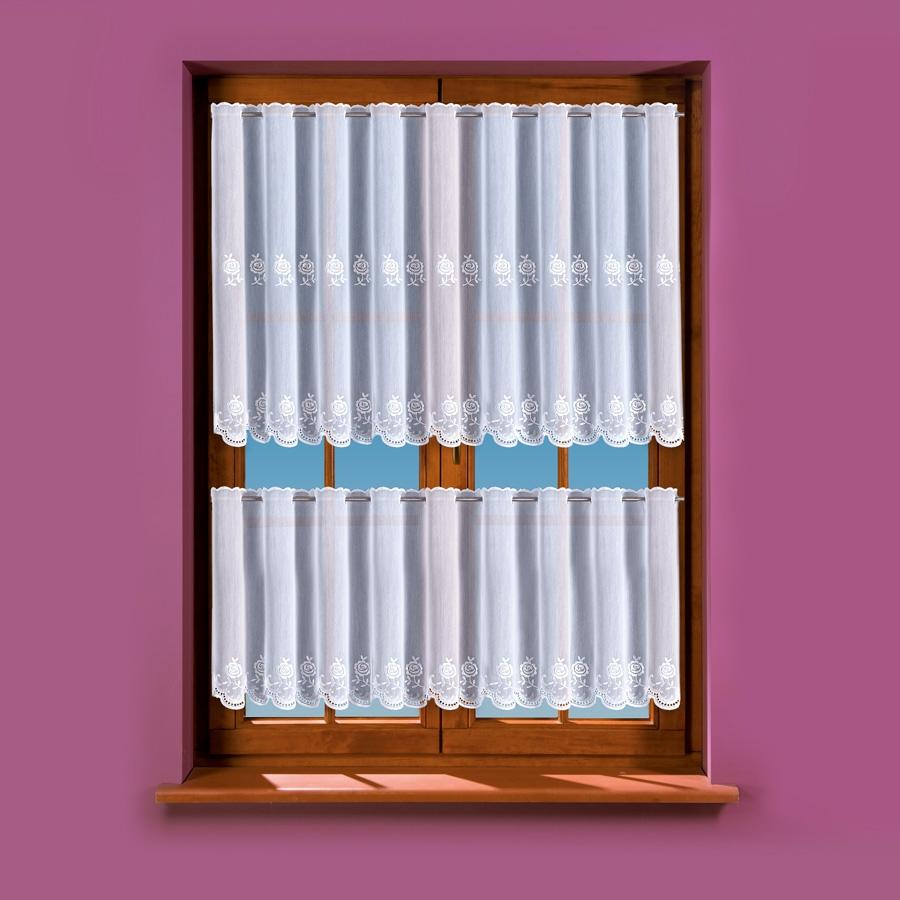 Biela žakarová vitrážka s otvormi na vitrážnu palicu 60cm. ...