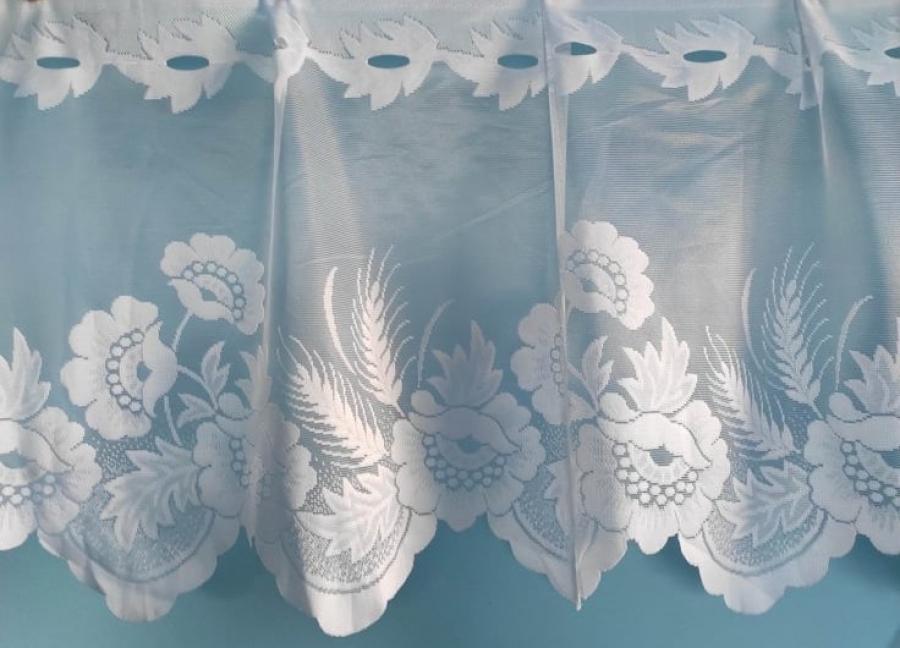 Záclona biela žakarova metrážová vitrážka „Rena“ s otvormi