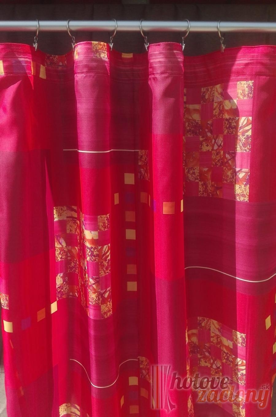 Hotový záves ľahký na bordovom podklad so zeleným vzorom N 08