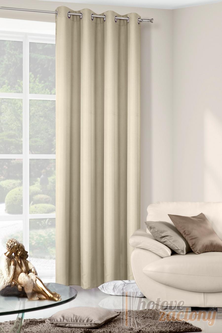 Bežový hotový hladký záves bez vzoru.