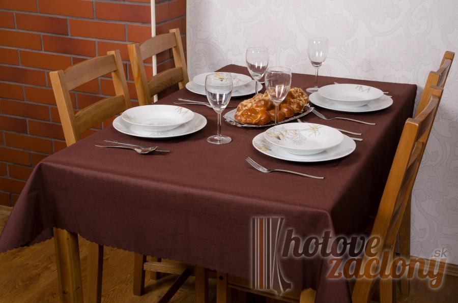 Hnedý teflónový obrus 100×140 cm je ideálnou voľbou pre menšie až stredne veľké jedálenské stoly. Jemná hnedá farba pôsobí elegantne a teplo. Teflónová úprava odpudzuje vodu a nečistoty, čím chráni povrch stola a uľahčuje údržbu.