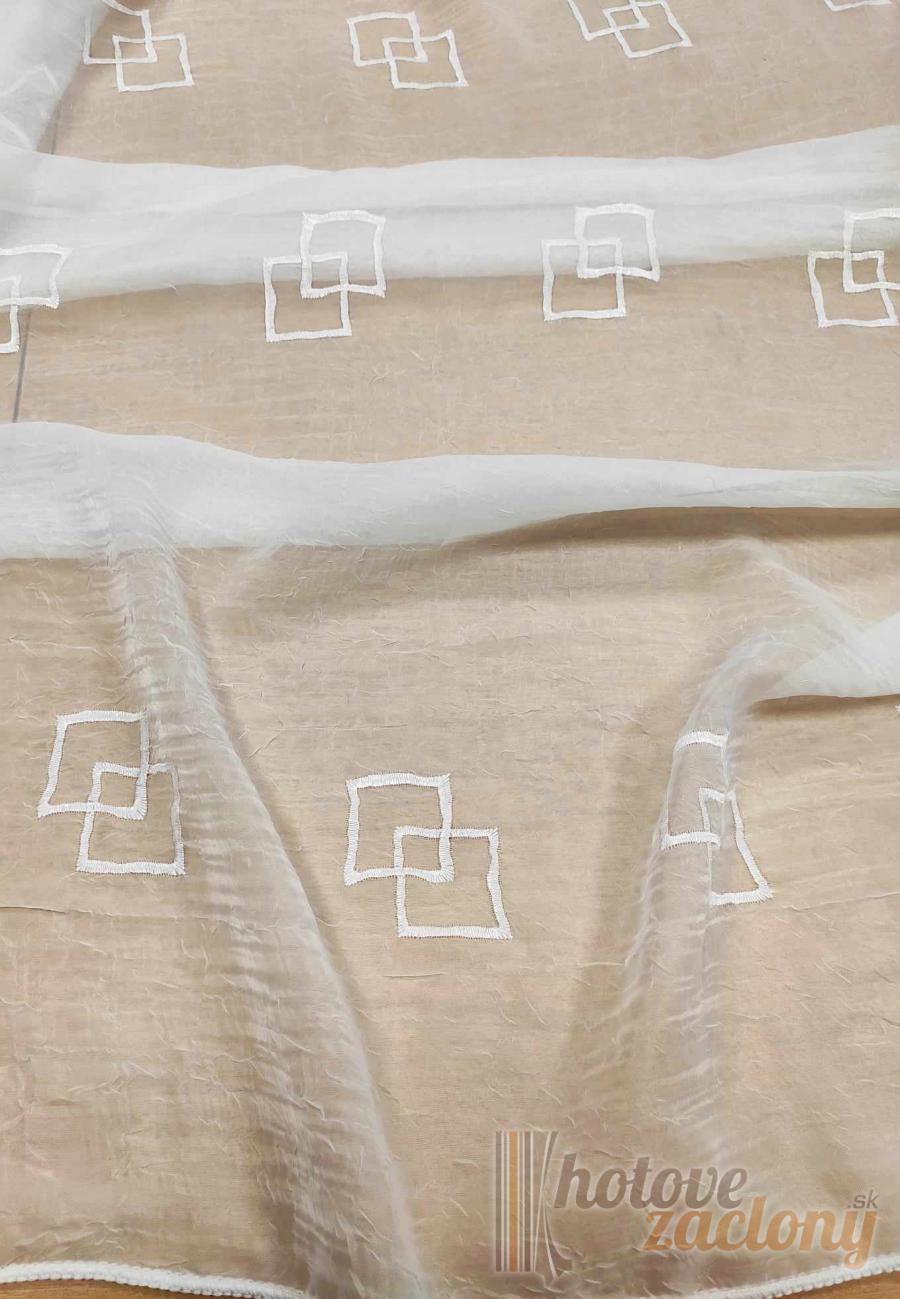 Záclona biela metrážová vyšívaná kreš so záťažovým lankom – elegantná záclona s textúrou