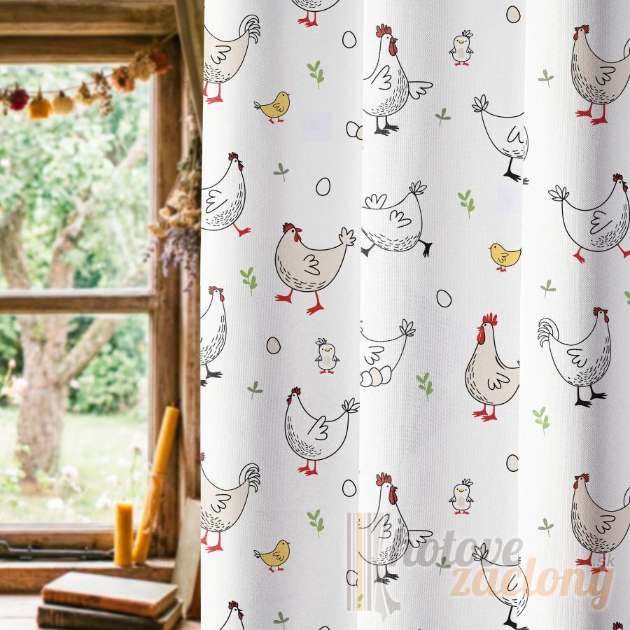 Dekoračný záves s motívom sliepočky je ideálny na vytvorenie veľkonočnej atmosféry v domácnosti. Veselý vzor oživí kuchyňu, jedáleň aj obývačku a dodá priestoru hravý a sezónny charakter.